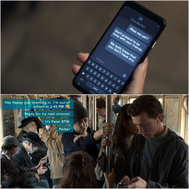 凱特和克林特告別後,克林特提醒她沒事不要傳簡訊,但凱特還是耐不住性子傳了一堆簡訊,類似的情況我們在《蜘蛛人:返校日》也看到彼得帕克一直傳簡訊給快樂霍根,他們都等不及想和偶像證明自己。