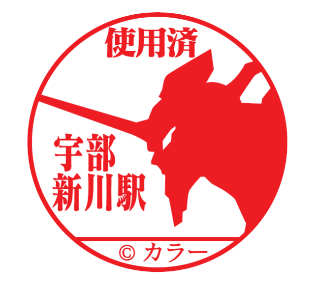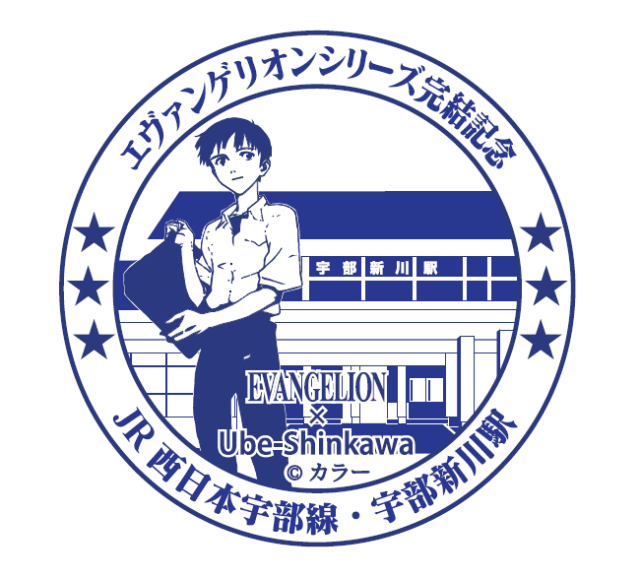另外,與當地的 JR 西日本合作,推出了福音戰士專屬的車站印章,相信對於鐵道迷來說車站印章是一個非常值得紀念的,上面有著主角真嗣外,也寫上《新世紀福音戰士》完結紀念的文字,並有該車站的車站名稱與背景。