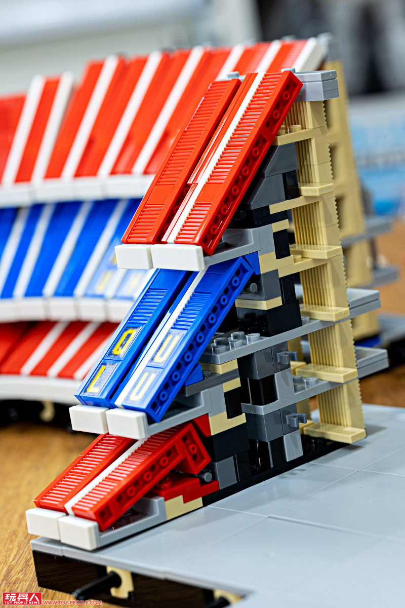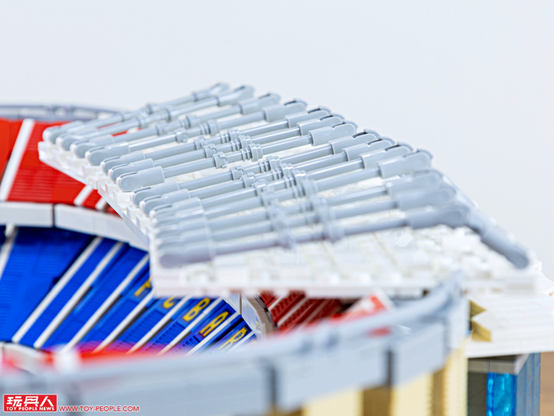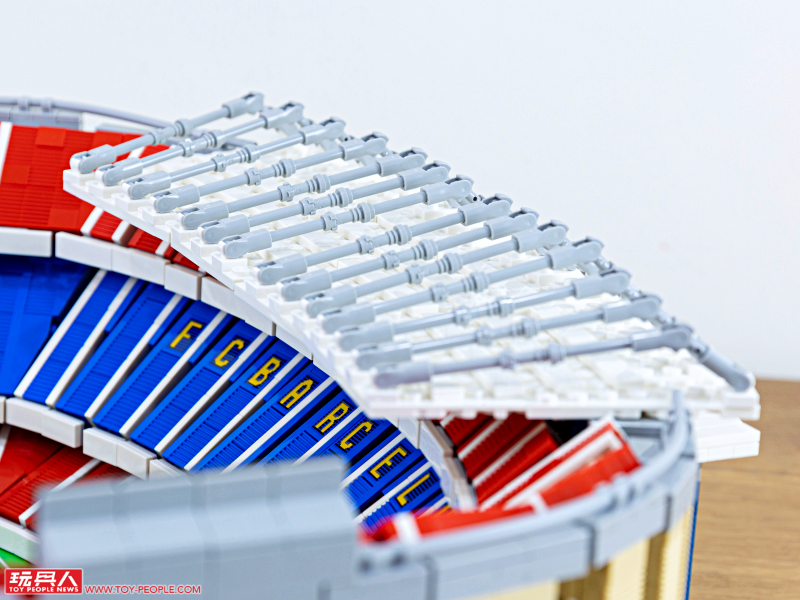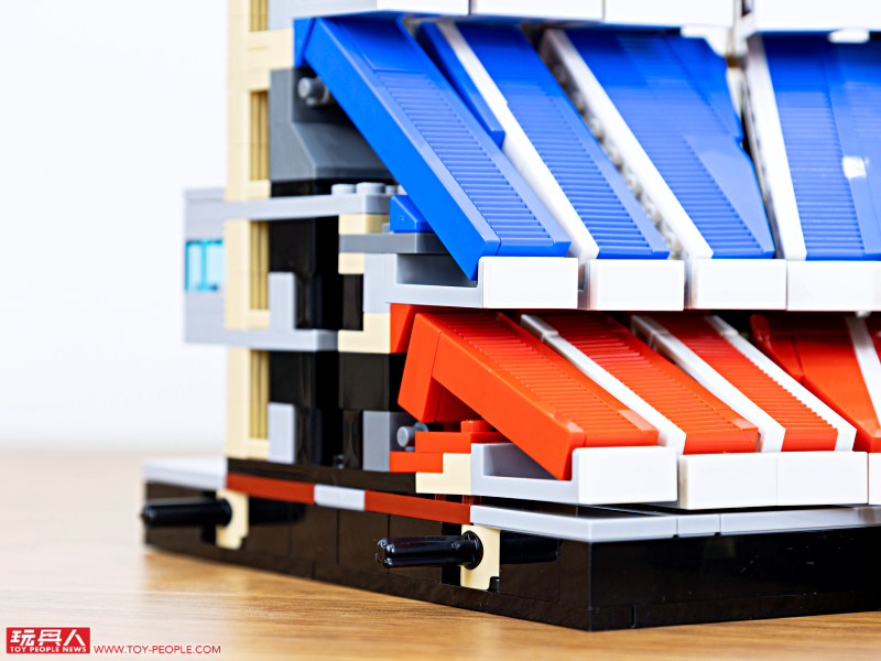▼ 完成!坐擁 5500 片零件的足球場,其存在感果然是不同凡響,也因為專家級別的商品調性,除了天花板頂蓋之外,樂高顆粒感幾乎被修飾掉了。