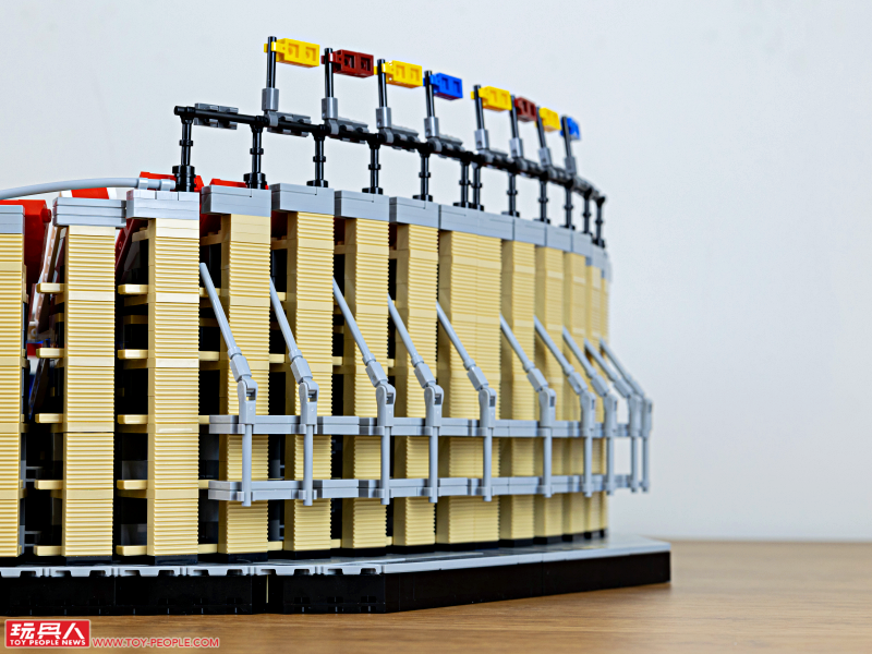 ▼ 球場看台的剖面圖,跟真實球場的設計非常相似,也因為這樣的結構與為了達成圓弧曲線而設置的卡榫,在組裝的時候要稍微注意一下施力點,如果只是從左右側往內部緊壓卡扣,有可能會讓座位散掉喔。
