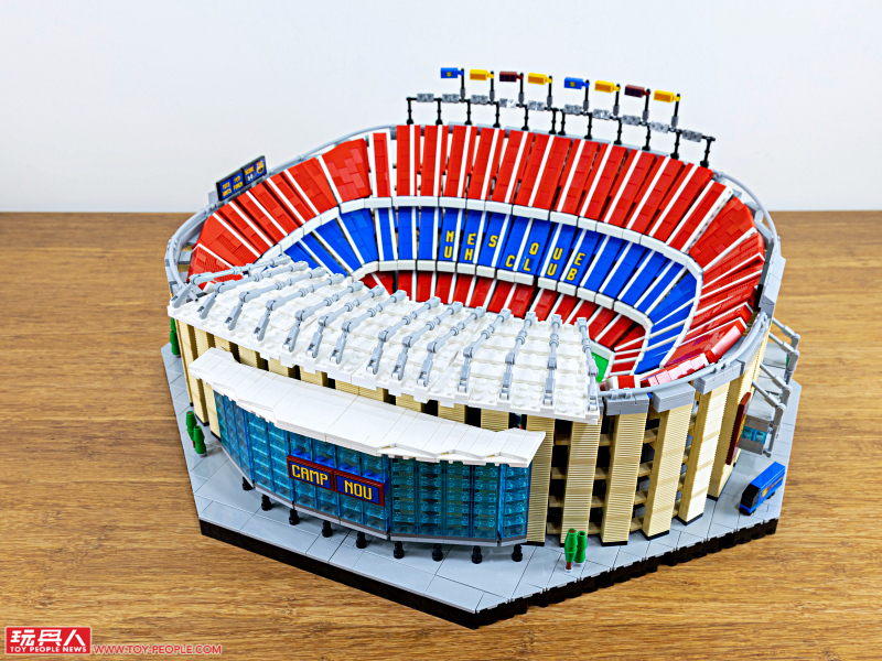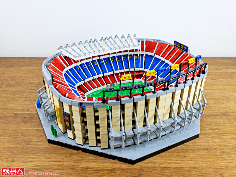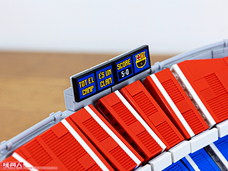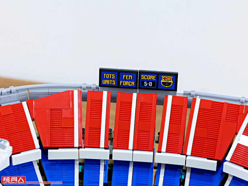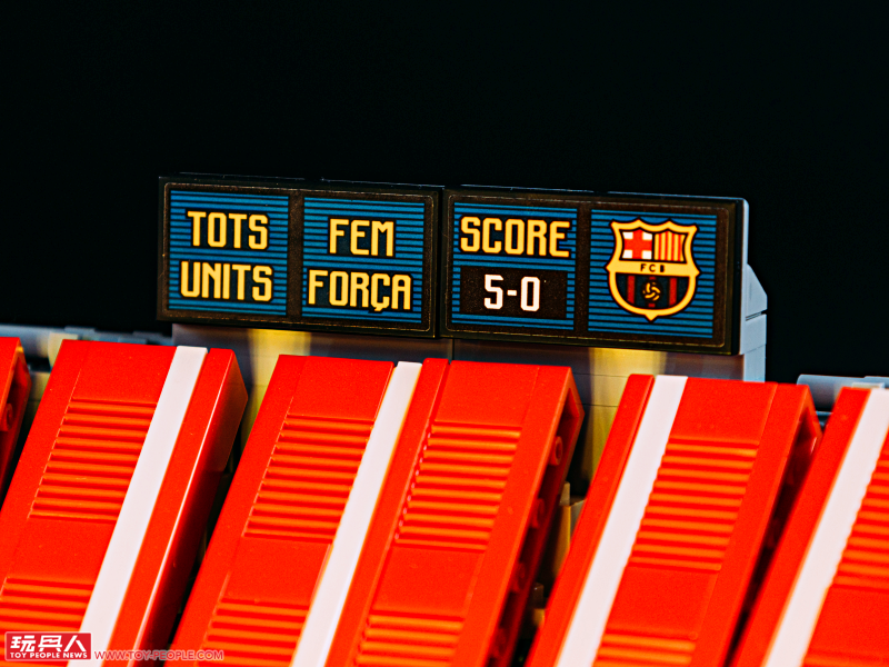 諾坎普球場,位於西班牙巴塞隆納市內,是屬於西甲球隊紅藍軍團巴塞隆納(FC Barcelona)的主場,同時,也是可容納近 10 萬民觀眾的歐洲最大足球場。這次的樂高「諾坎普球場」除了利用 5509 片零件高度再現整座球場的外觀造型之外,還以 2010 年那場世仇對決「巴薩 VS 皇馬」為題,製作出巴薩於主場大勝皇馬的 5:0 計分板,為巴薩迷的美好回憶做出一個究極點綴,不過對皇馬迷來說,這場球賽絕對是有如滅門慘案一般的歷史性恥辱。