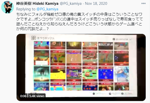 實際上,神谷早在去年就抱怨過資料夾這件事,神谷本人刀子口豆腐心(?),在Switch上面買了無數的遊戲,而對他來說,這也真的是一個存在已久的困擾。