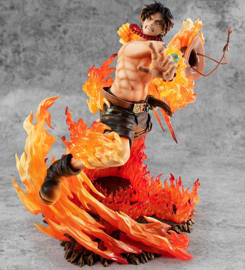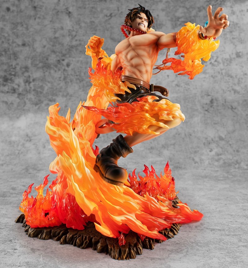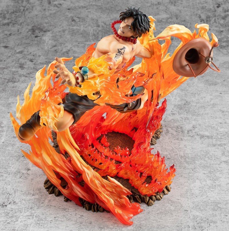 超人氣商品「P.O.P NEO-MAXIMUM 波特卡斯·D·艾斯 15th LIMITED Ver.」PVC 塗裝完成品,抽選再登場!與 2019 年販售的版本相同,以施展經典招式「火拳」的躍動造型呈現艾斯帥氣爆炸的模樣,火焰透明特效件纏繞全身,並輔助帽子掉落、艾斯向後拉拳的離地姿態!