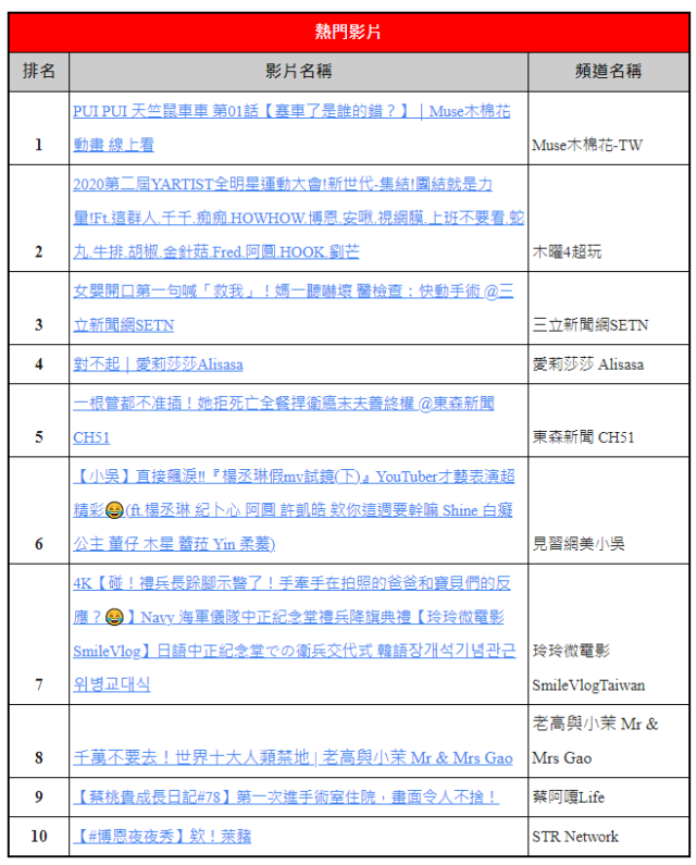 2021年即將結束,各大網路社群也開始逐漸統整這一年來所發生的種種趣事,例如全球最大影音平台YouTube近期,近期也為影片、音樂等創作列出了各國地區的排行榜名單,而近日台灣YouTube官方也列出了「YouTube 2021 台灣年度影片排行榜」。