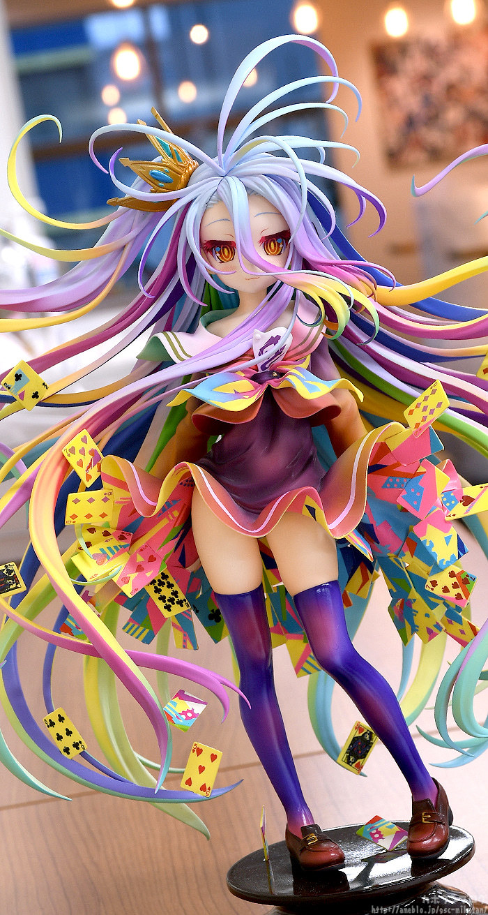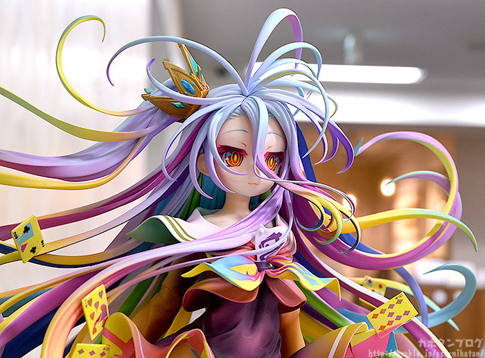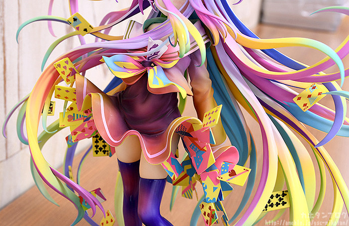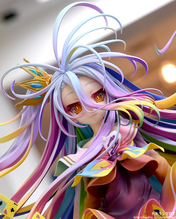 「GSC 白 -榎宮祐 Art Works-」1/7比例模型,將畫冊「NO GAME NO LIFE 遊戲人生 榎宮祐 Art Works」的封面插畫立體化,在高約 280mm 的尺寸中,重現原畫中魅力的躍動造型與繽紛色彩!飄逸的頭髮呈現份量,在纖細舞動的髮絲之中穿插著代表遊戲的撲克牌,營造無重力感!並徹底還原榎宮祐老師筆下令人驚豔的豐富高彩色調,炫目而華麗~
