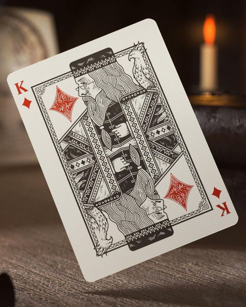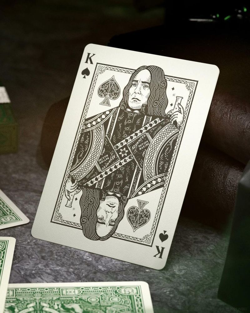 卡牌採用被認可為良好管理森林、推廣永續經營世界森林的 FSC 認證紙張製造,植物基油墨印刷出精美的圖樣,並融入哈利波特的魔法世界觀,包含J、Q、K的哈利波特、妙麗、榮恩,以及馬份、石內卜、佛地魔與校長鄧不利多等,在鬼牌中更是有可愛的多比和海格,黑桃A的貓頭鷹等角色元素,讓每一張卡牌都充滿魔法氛圍,值得收藏!