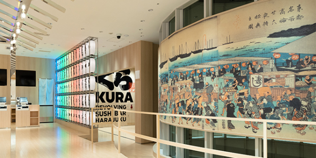 如果算上新宿店,藏壽司目前在日本共有3間「全球旗艦店」,官方稱旗艦店是「全球戰略」的一部份,會特別使用能讓人感受到和風的木質裝潢,也會特別多聘請多語言員工,配合翻譯機(?!),讓世界各國的人都能開心享用壽司。