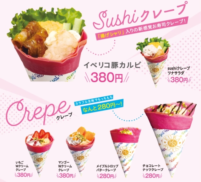 而原宿店的重頭戲之一,就是藏壽司的甜點子品牌「KURA ROYAL」,這裡供應限定的甜品和「壽司可麗餅」,可以說是相當有創意,而且也很適合拍照打卡的商品。