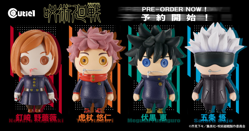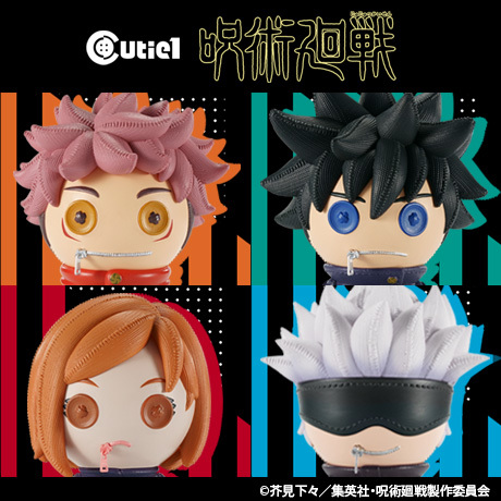 主打可愛且易於收藏的『Cutie1』系列,以布偶玩具風格重新詮釋各 IP,將乍看以為是柔軟材質的可愛人物角色,打造成 PVC 收藏品。在這次的「Cutie1 咒術迴戰 第1彈 完全套組」中,收錄有:虎杖悠仁、伏黑恵、釘崎野薔薇、五條悟四位角色。每款尺寸約高 12 cm,無論是帶有皮革質感的紋理細節,還是以縫線鈕扣作成的眼睛、縫合處的針逢以及嘴部使用拉鍊呈現的設計,都相當趣味且擬真,宛如真的布偶一般,可愛中又不失精緻細節!