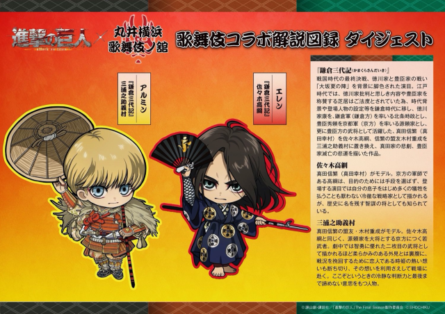 規劃上會場將會展示這些歌舞伎服飾與合作相關的背板給訪客拍照與觀賞,另外也會以本次合作的繪圖製作相關的周邊商品在會館裡販售。不論你是喜歡歌舞伎表演還是愛好巨人的粉絲,人如果在日本關東地區的朋友不妨可以前往觀賞看看這個動漫作品與傳統文化的結合活動,別有一番風味唷 !