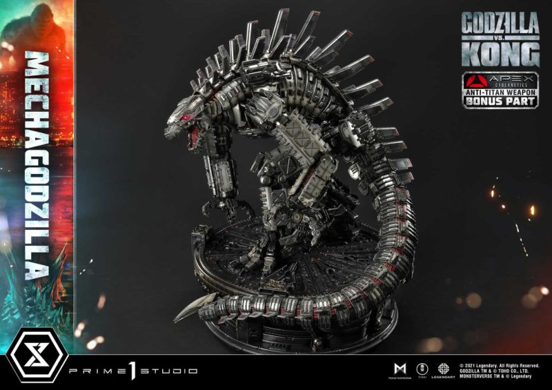 底座以頂級神經機械企業為設計,佈滿大量的機械結構,並營造出機械哥吉拉碾壓性的氣勢!在眼部和口部內置有紅色LED光效,徹底還原劇中與哥吉拉、金剛大戰的史詩場面!另外在Bonus Version 中追加有抬頭的替換頭雕,整體大魄力散發令人敬畏的力量和極強的存在感。