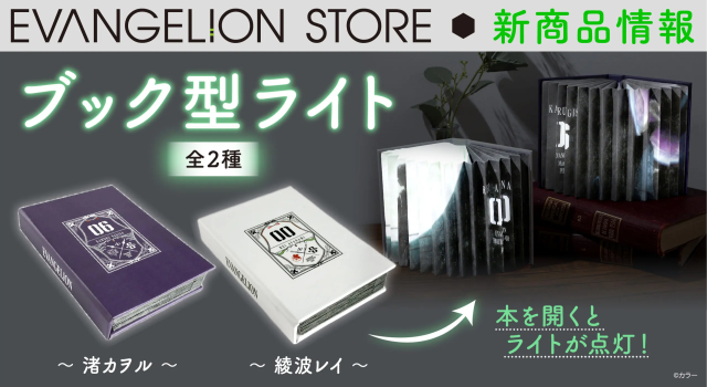 EVANGELION STOREより綾波レイモデル/渚カヲルモデルのブック型ライト