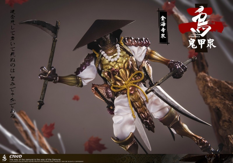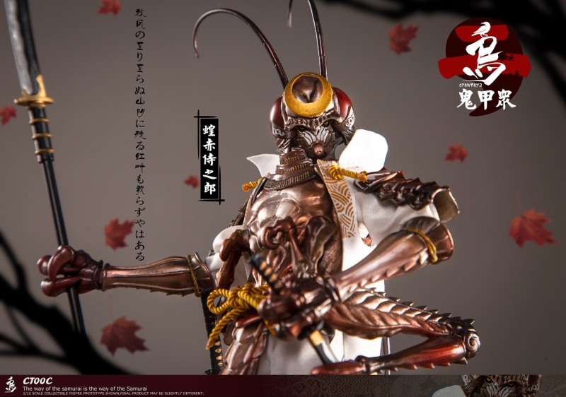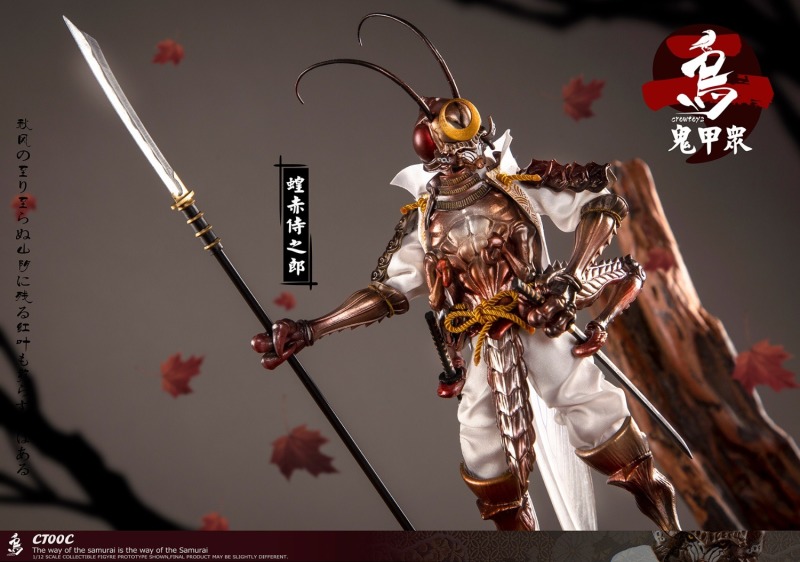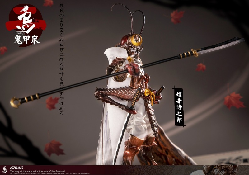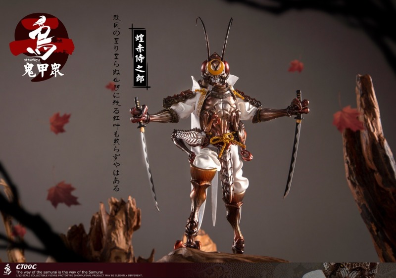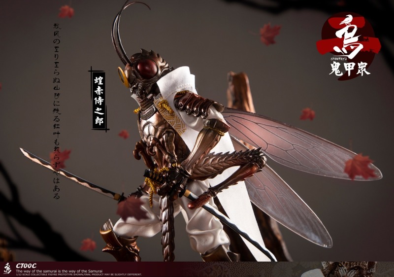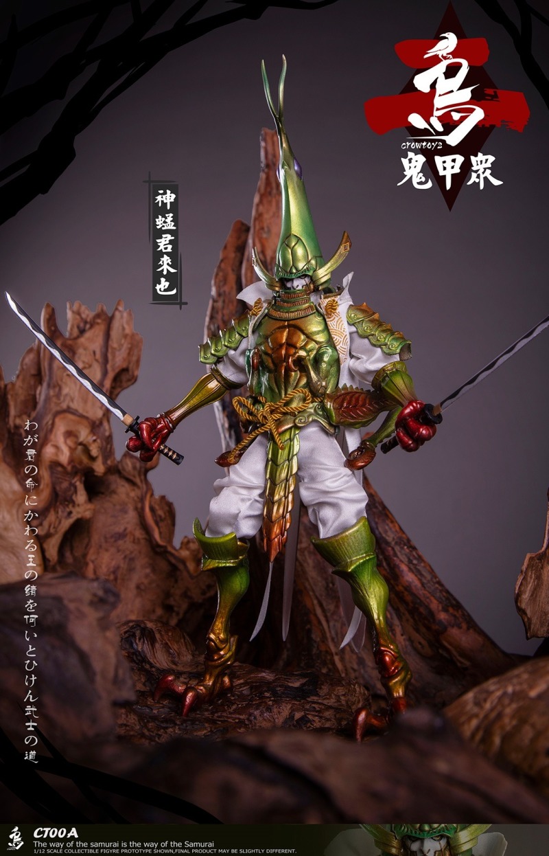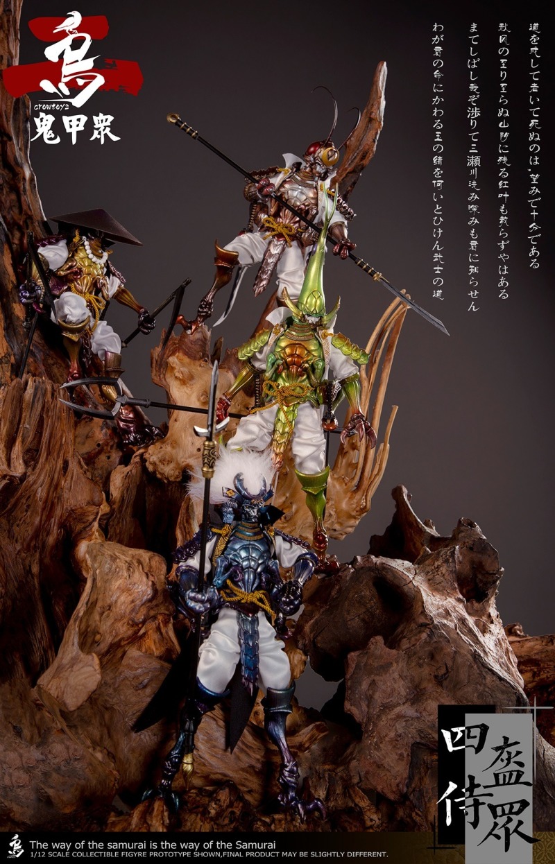 「鬼甲眾二」延續鬼甲眾系列風格,以甲蟲堅硬的外殼為原型,融合武士身上的鎧甲,巧妙設計出帥氣的戰國士兵!這次登場的角色分別有:「神蜢君來也」、「瀨古川大將」、「蝗赤侍之郎」、「金海寺眾」1/12比例可動人偶!除了觸角、腿毛(?)等精緻生物構造,身後的薄翅也驚艷再現!