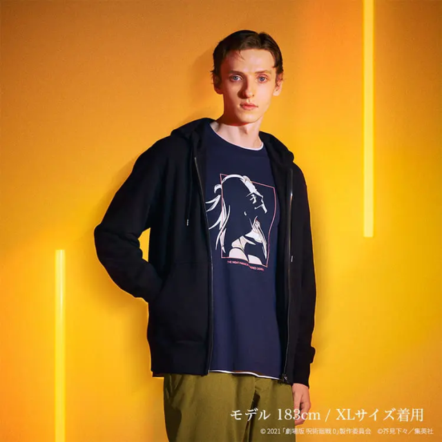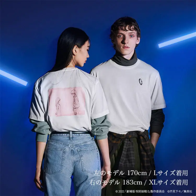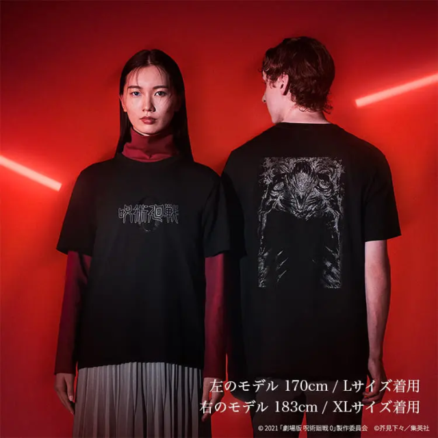 以本次劇場版主角-乙骨憂太與里香再次相遇的畫面為主題,正面左胸處配置兩人童年定情的戒指,背後則為兩人再次相遇的場景,別有一番浪漫風味,售價為 1,500 日圓。