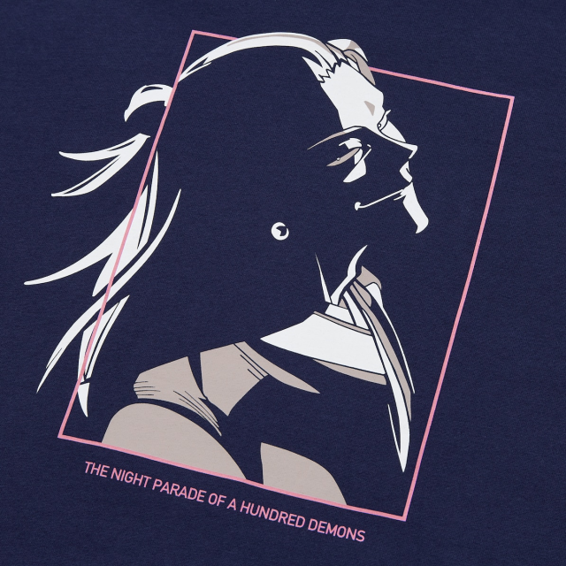 以本次劇場版夏油傑的模樣出發,帶有邪氣的臉部剪影輕鬆的帶出身為反派的惡意氛圍,圖案下方以英文寫上「百鬼夜行」的英文,售價為 1,500 日圓。