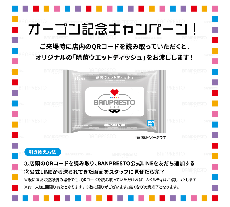 『BANPRESTO LAB』店鋪內預計定期展出 50 款最新推出的角色模型景品,包含具備亮麗大眼造型的『Q poske』系列、造型相當精密的『Grandista』系列以及易於收藏的掌中尺寸『World Collectable Figure』系列,未來也預計每月更新展出新作。
