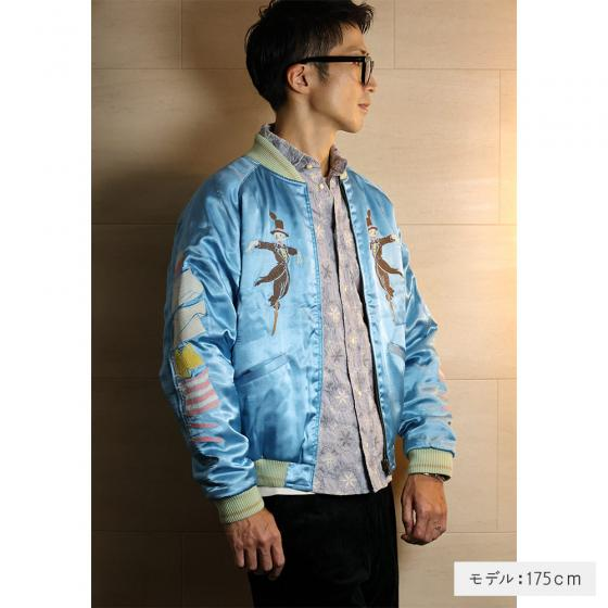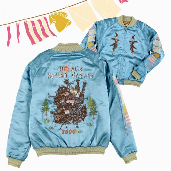 這次推出的橫須賀外套,官方以「大人的美式休閒」為主題,以華麗精密的刺繡圖案,展現出作品中的世界觀,並推出兩款不同樣式-霍爾的城堡&鳥霍爾,分別以天空藍與黑色的主色系設計。