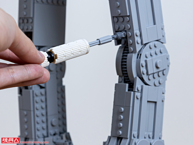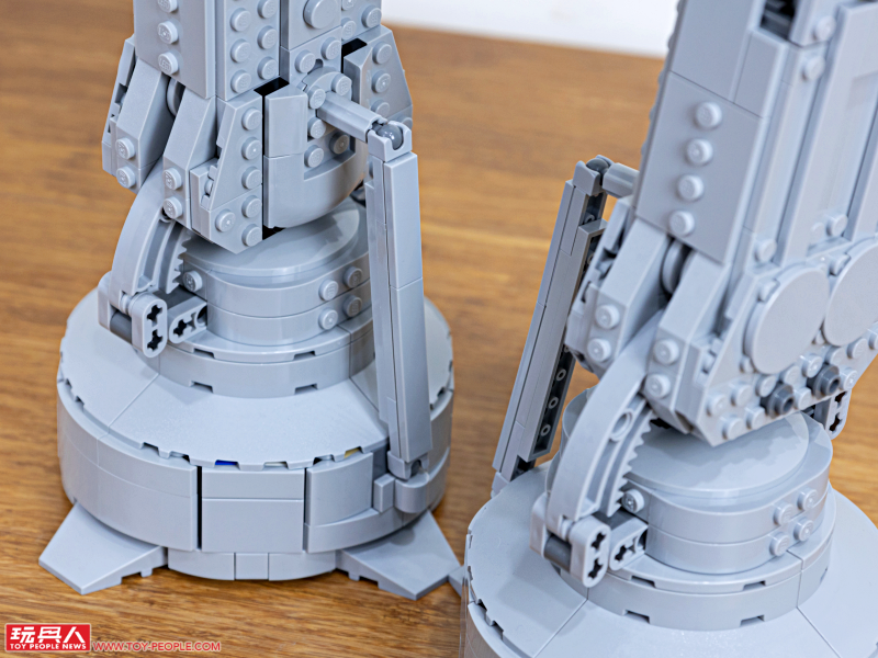 ▼ 接著是相當重要的足部,畢竟要支撐那麼重的軀體、以及把玩時可能會施加的重量,所以必須同時兼顧穩固性與操控性,樂高這次不是採用可動的關節零件,而是利用齒輪咬合的方式製作,想要移動四足角度時不能直接彎折,必須採用彷彿鎖螺絲一般的方式來達成,可說是大大降低了零件疲乏所帶來的崩潰危機。