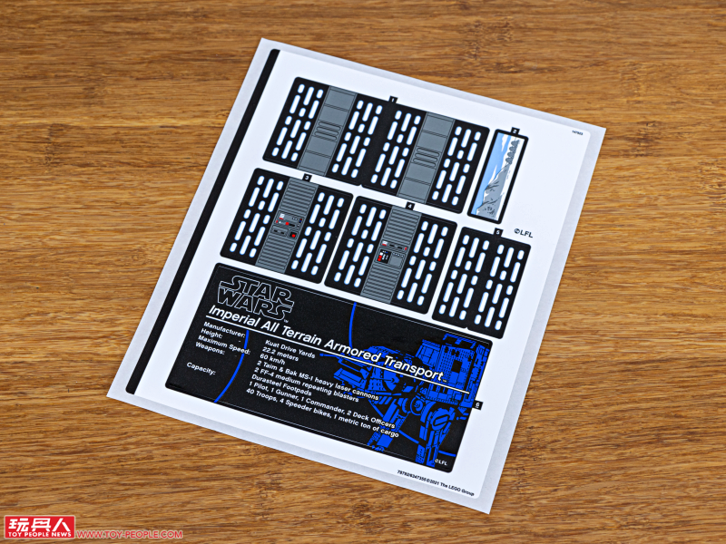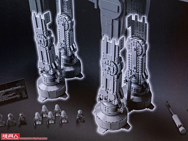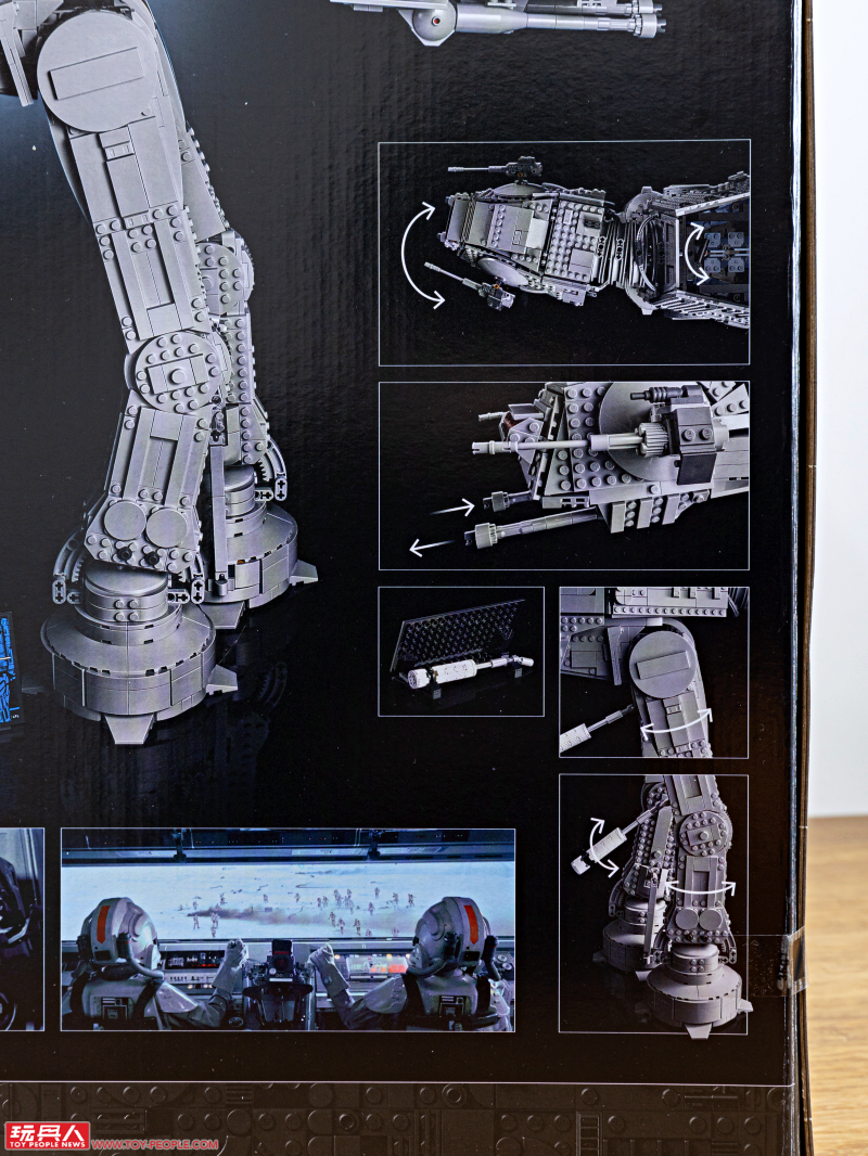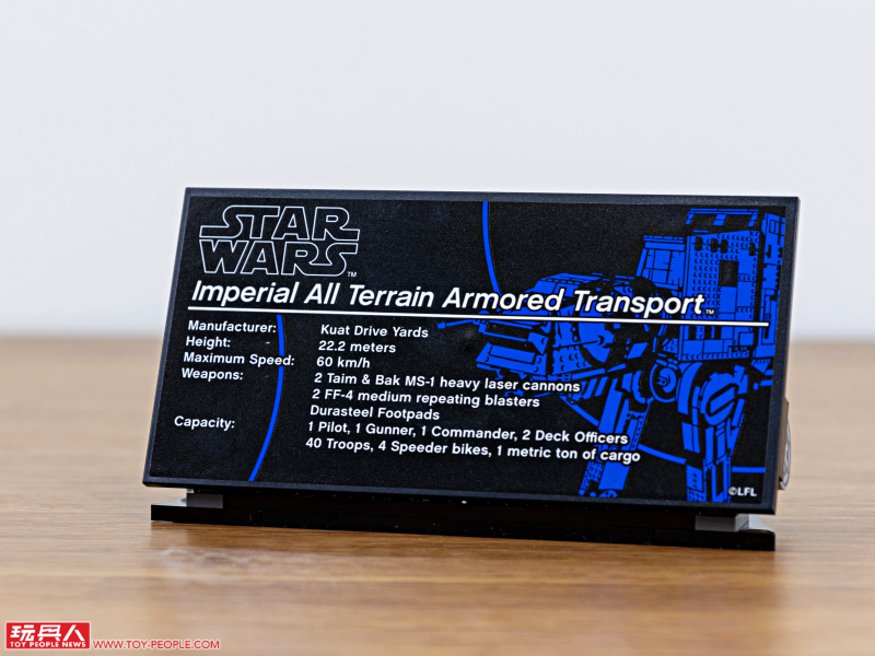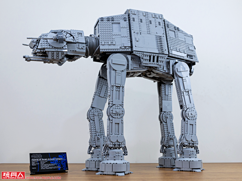 《星際大戰》故事裡隸屬於銀河帝國(The Empire)中最強悍、最大型的地面載具 AT-AT,是全地域型裝甲載具 All Terrain Armoured Transport 的簡稱,壓倒性的巨大尺寸、四足步行的姿態,以及在「霍斯戰役」中展露無遺的誇張破壞力、防禦力都讓人印象深刻,當然,還有在電影《星際大戰五部曲:帝國大反擊》中著名的跌倒場景;本作即是利用 6785 片零件,以樂高人偶的比例、62 公分的高度來還原《帝國大反擊》中的 AT-AT。