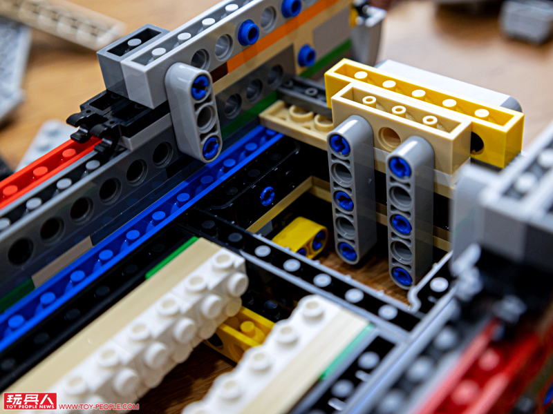 ▼ 由於這次的 AT-AT 在組裝完成後絕對是會被抬起移動,所以除了一般的磚塊拼接之外,樂高還在多處利用科技零件、以插銷方式固定,達到平面堆疊之外的三維卡扣,使結構更加穩固。
