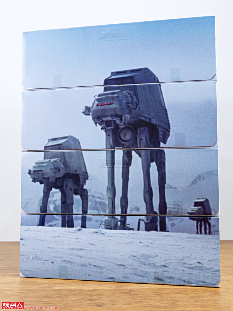 ▼ 打開外包裝之後是四盒零件,其盒繪能拼成霍斯戰役中 AT-AT 的進軍模樣。