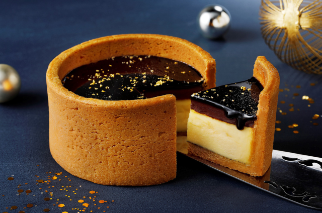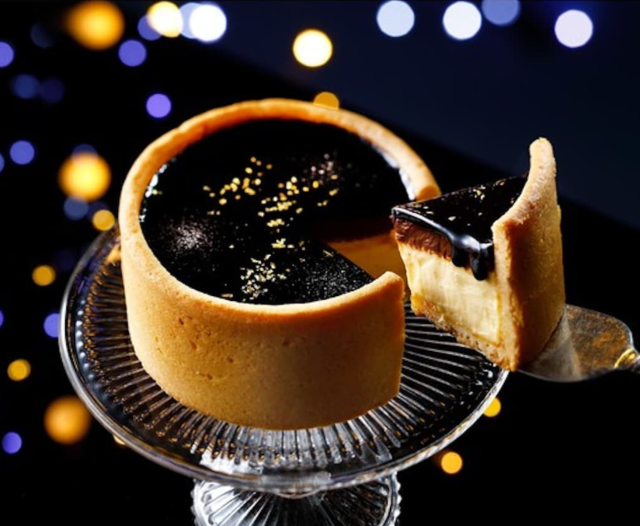 「星空蛋糕」採用兩層製作而成-以比利時巧克力的最上層和使用北海道奶油的布丁層包裹在酥脆的蛋糕體中製成的蛋糕。蛋糕表面上有著黑色星空的樣貌,以巧克力與金箔的搭配,展現出飛機航行在空中的美麗景色,售價為 2,160 日圓。而這款「星空蛋糕」也是每年東京牛奶起司工房推出的新年前定番,都會吸引大量購買人潮。