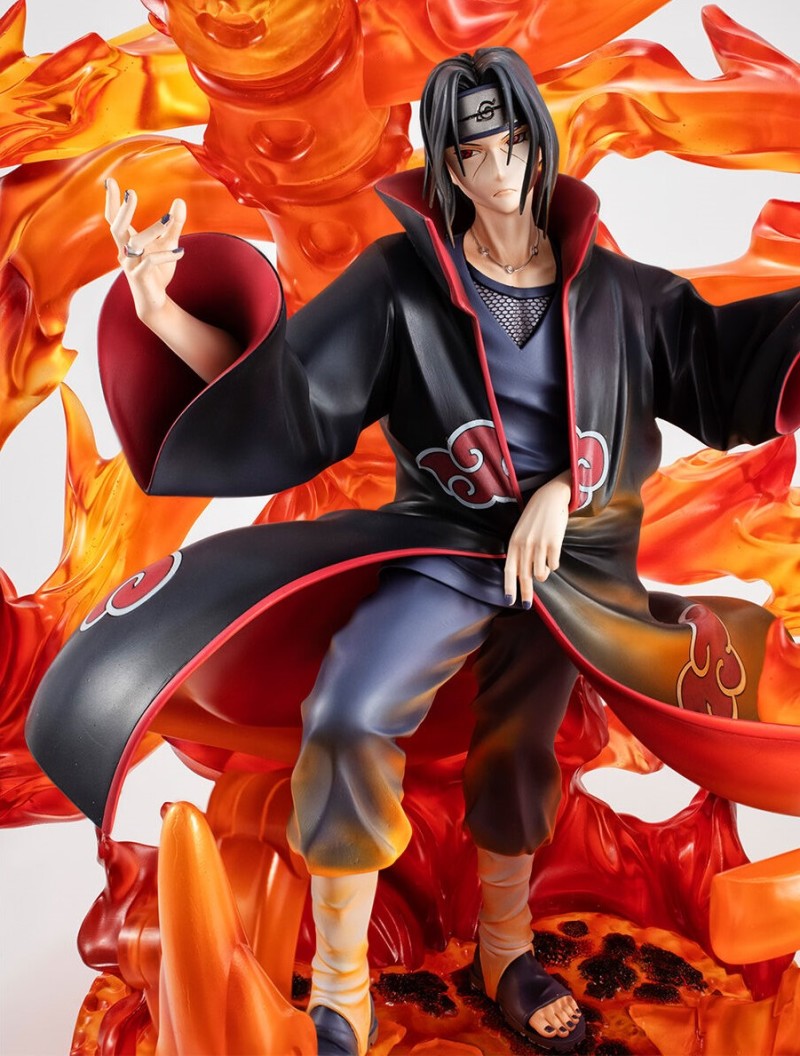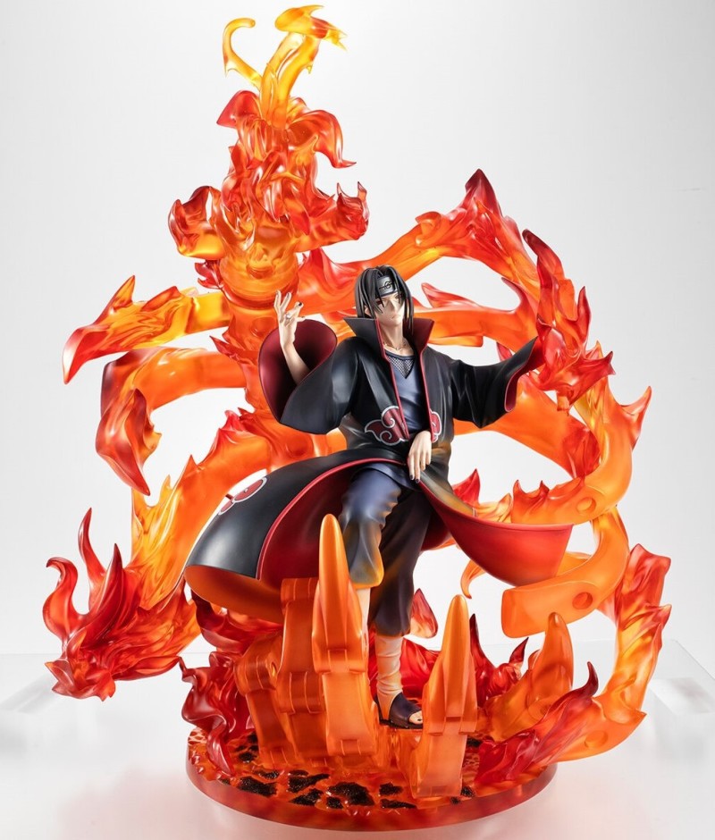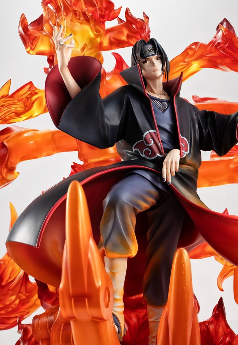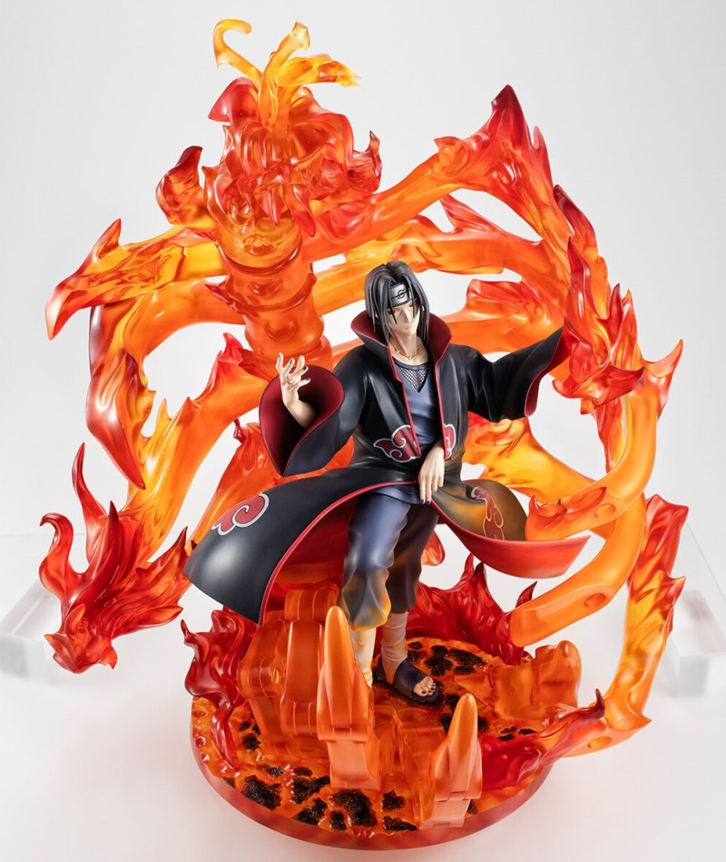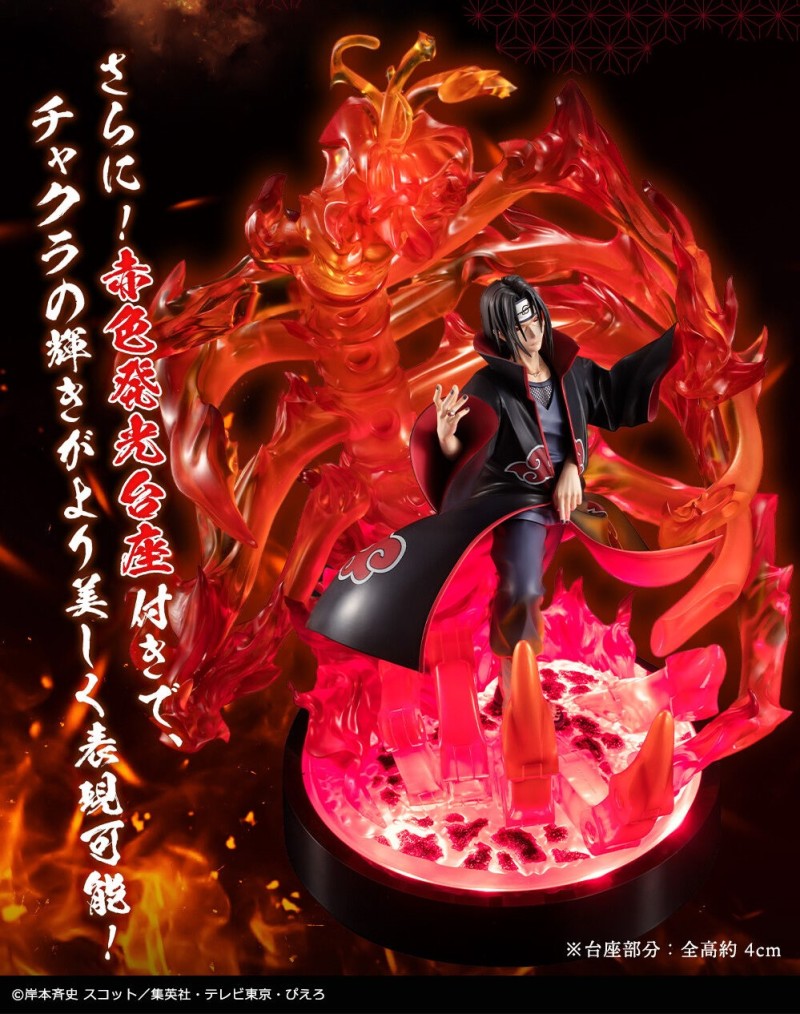 為慶祝《火影忍者》動畫 20 週年,推出「Precious G.E.M. 宇智波鼬 須佐能乎ver.」塗裝完成品,尺寸全高約 38 公分,魄力展現鼬發動須佐能乎後,查克拉躍動的壓倒性場景!還原鼬冷豔的表情、特色的淚溝紋路,在感受到力量的同時,從也能鼬的眼神中看到深沉的陰鬱...。曉的外衣生動揚起,以透明材質打造的須佐能乎如同火焰般流竄、似人類的脊椎正在成形!