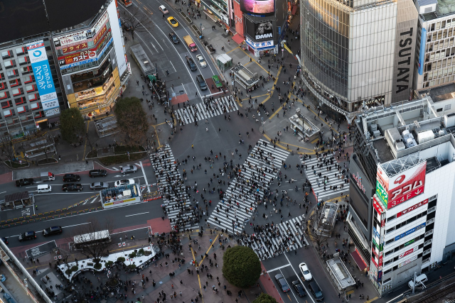 「澀谷站前交叉口 」,又稱為澀谷全向交叉路口(渋谷スクランブル交差点),該路口是澀谷人流往來最密集的地方,被視為日本東京都市風景的象徵,也被稱為是「世界最著名路口」之一。