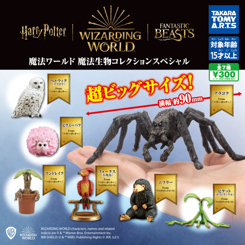 知名日本玩具公司 Takara Tomy(株式会社タカラトミーアーツ)旗下暢銷熱賣的轉蛋品牌 T - ARTS,將以J·K·羅琳的奇幻魔法世界為主題,推出「魔法世界 魔法生物典藏特輯」轉蛋,一共有七種款式,參考售價為一轉 300 日圓,預計將於 2021 年 12 月下旬開轉!
