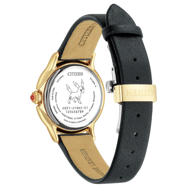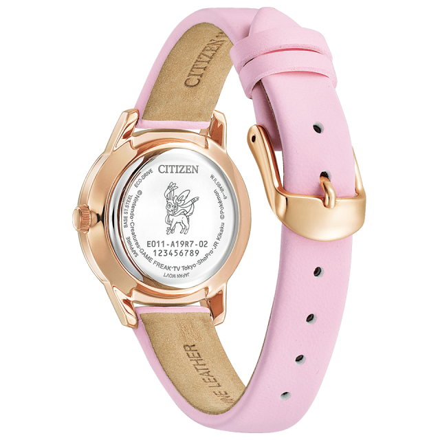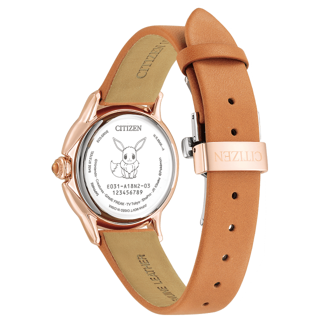 搭配伊布的配色打造,表面上鑲有鑽石的精美模樣,有如精品般的質感。錶背印有伊布的圖像,驗明正身。