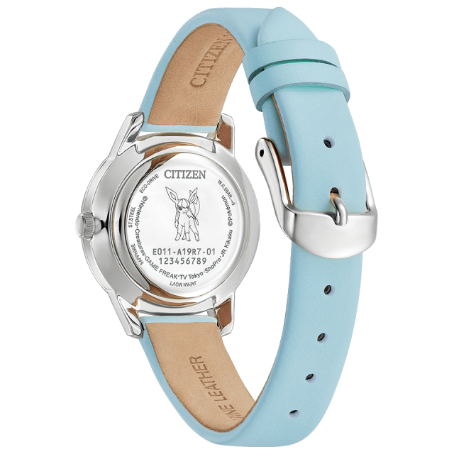 以仙子伊布的代表色淺藍色製作,並以其妖精系寶可夢的代表在錶面上配置了妖精系的圖案。錶背印有仙子伊布的圖像,驗明正身。