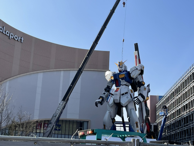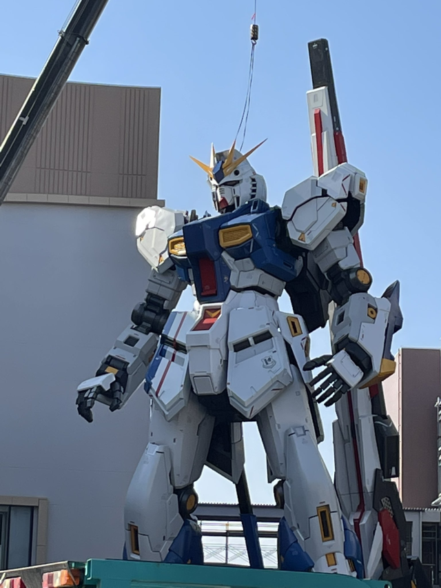 這架由動畫導演富野由悠季進行監修重新設計的「RX-93ff ν鋼彈」,重新設計出能支撐於地面的新武裝「長程翼狀感應砲(ロングレンジ・フィン・ファンネル)」。目前可以看到已經將各零件送至該地進行組裝,逐漸有個雛型了,讓日本鋼彈粉絲非常期待。