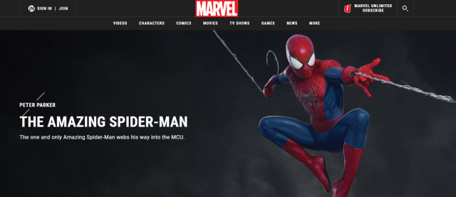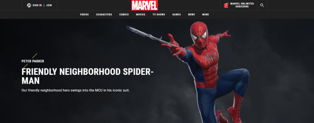 儘管在「好鄰居蜘蛛人」與「驚奇蜘蛛人」的電影角色欄位上,並沒有明確註明演員名字,但從Marvel官方網站的敘述,也能夠清楚知道就是分別指初代蜘蛛人「陶比·麥奎爾」與二代蜘蛛人「安德魯·加菲爾德」。