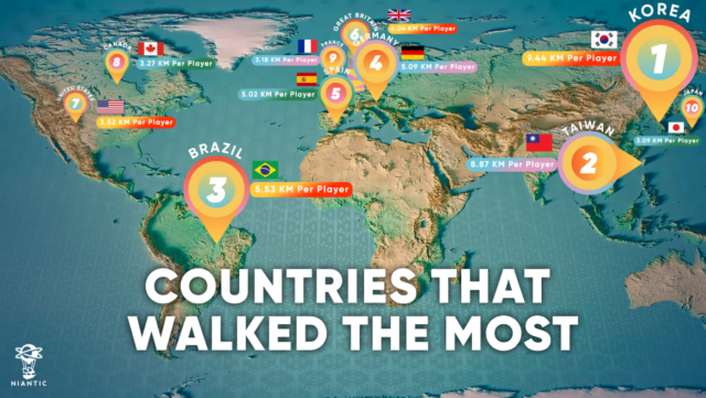 從下圖數據可以看出,全世界「最會走」的國家,第一名是韓國,第二名是台灣,第三名則為巴西。台灣每一位玩家就走了約 8.87公里,第三名的巴西僅有 5.53 公里,可以發現韓國與台灣幾乎是世界重度玩家的代表。
