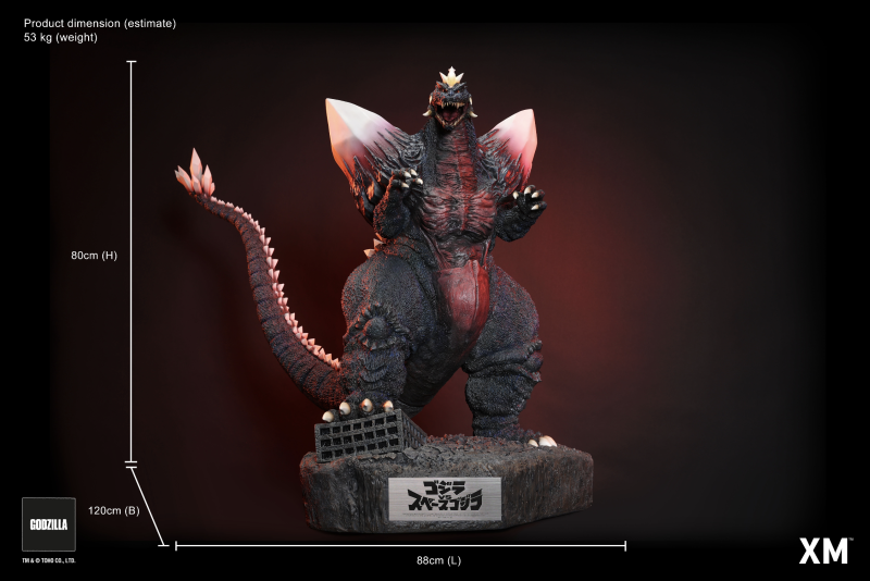 「XM Studios 太空哥吉拉雕像」,延續哥吉拉系列作品,由 XM Studios 概念化和詮釋、日本造形作家田中健一擔任建模設計。尺寸達 80 公分高、尾巴長達 120 公分,以迫力尺寸打造出太空哥吉拉兇惡的面相!造型致敬電影中皮套戲服的厚重感,還原頭上黃色的角、嘴角獠牙和雙肩巨大的結晶體等特徵,在粗壯的身軀上刻劃出生物感的皮膚紋路以及筋骨般、內臟外露的腹部等造型,背鰭與尾端佈滿的結晶體,從任何角度都能感受到太空哥吉拉的霸氣!