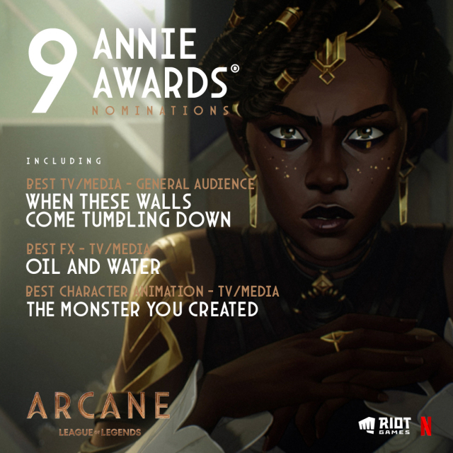 而也因為極佳的好口碑,日前第49屆動畫最高獎項「安妮獎」所公開的入圍名單中,Netflix《奧術》則是一口氣包辦了包含最佳動畫、最佳導演、最佳美術指導、最佳特效…等九大獎項入圍名單,毫無疑問是有機會成為本屆安妮獎的最大贏家。