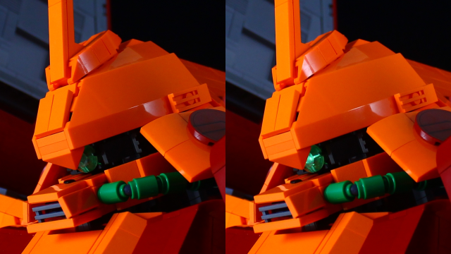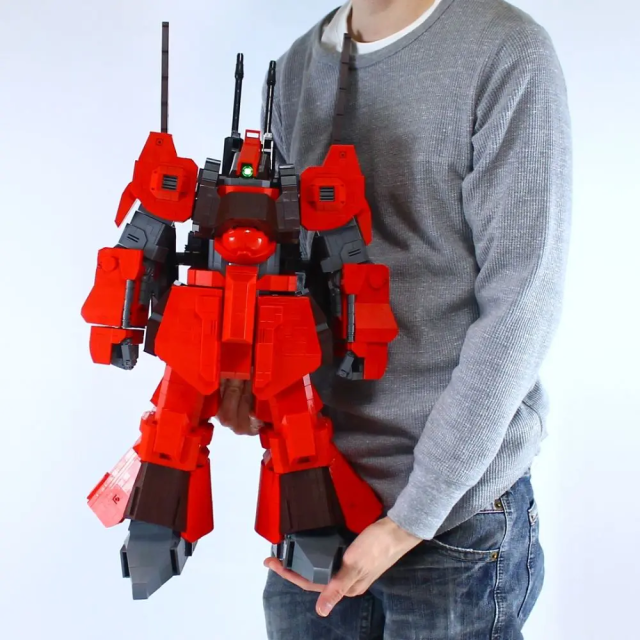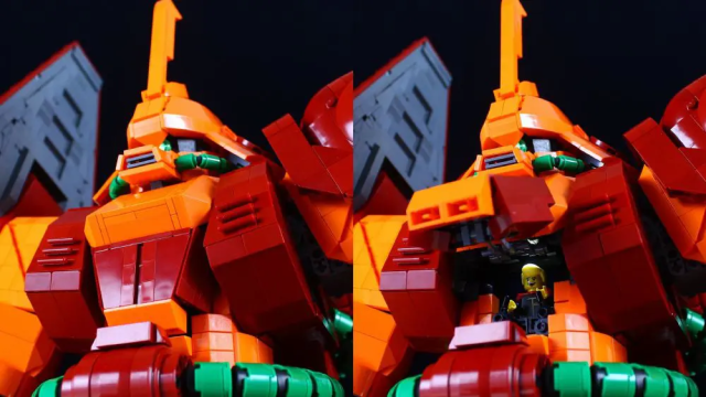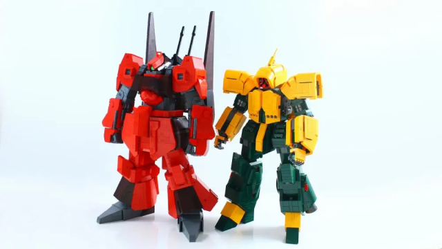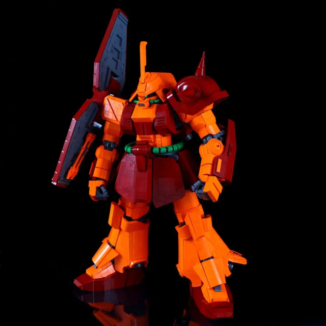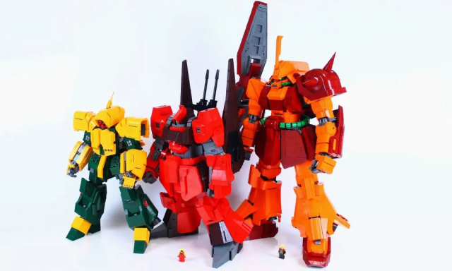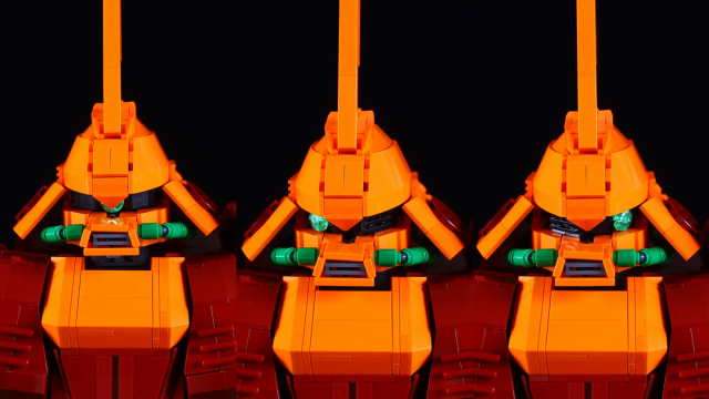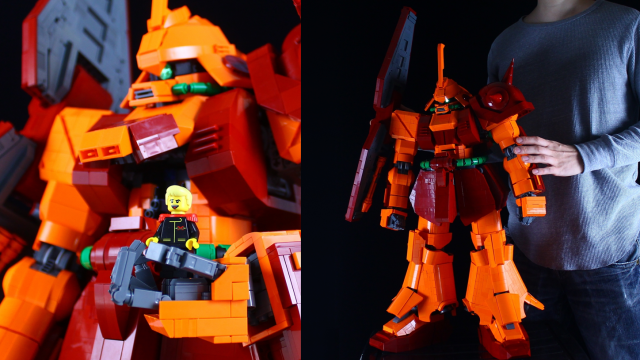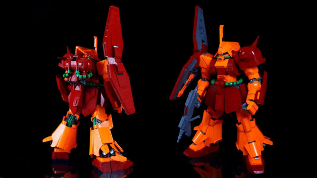 整體採用《機動戰士Z鋼彈》出現的橘紅色系,更使用樂高組裝將其武器還原成原設定的樣貌,並將身體的機甲都忠實重現,老實說不近看真的很難發現這是樂高組裝而成的。