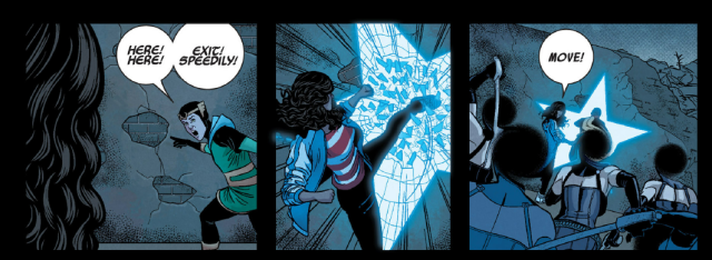 具有穿越多重宇宙能力的「美國女士」艾美莉卡·查韋茲(America Chavez),也確認於《奇異博士2》正式加入漫威電影宇宙。她在漫畫中可以透過星形傳送門穿越宇宙,這點我們在預告中可以看見驚鴻一瞥。