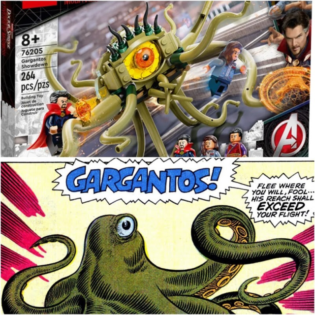 Shuma-Gorath 最初來自於Robert E. Howard的著作《The Curse of the Golden Skull》。但透過玩具可以得知,電影中將其改名為 Gargantos,漫畫中 Gargantos是「納摩」系列漫畫中的反派 Naga 操控的深海怪物,在漫畫史上只出現過兩次,沒甚麼太大重要性,更談不上多重宇宙級別。可能因為Shuma-Gorath名稱的版權問題,因此做了更動。