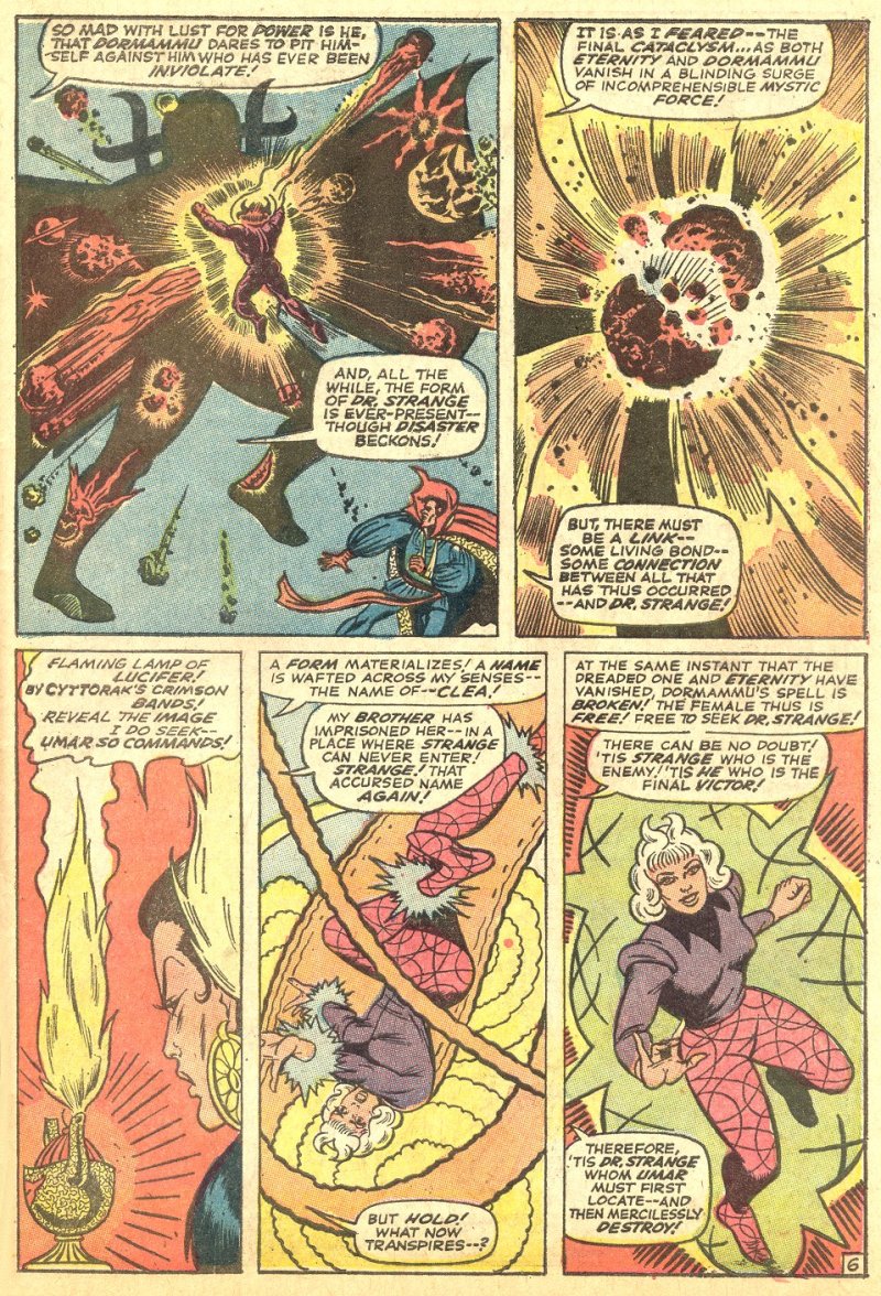 ▼ 在奇異博士的漫畫原作中,多瑪暮(Dormammu)的妹妹奧馬爾(Umar)曾利用一個叫做“路西法之燈”(Lamp of Lucifer)的神器,藉其噴射出火焰中的影像,得知了哥哥被史傳奇打敗的消息。
