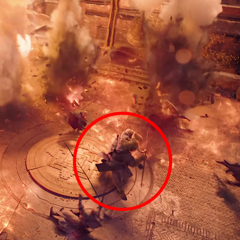 至聖所遭到轟炸,仔細看在畫面中有一位長著牛頭的法師,根據Legengs系列玩具可以得知,這個角色名為Rintrah會由《1917》男星亞當休吉爾 (Adam Hugill) 飾演。