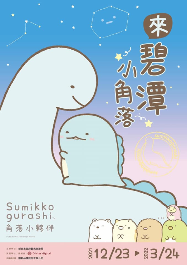 日本企業 San-X 所創作推出的虛擬角色- Sumikko Gurashi《角落小夥伴》( 又名角落生物 ) 深受不少大小朋友喜愛,可愛的外型讓人萌萌療癒。上周末 ( 12/23 ) 起與新北市政府合作,在新北碧潭放置角落小夥伴的大型水上裝置,夜間還有點燈展出。主題為「來!碧潭小角落」,時間至 2022 年 3 月 24 日止。