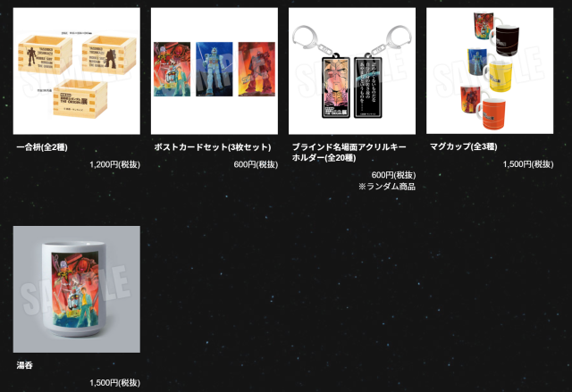 另外展覽不會少的周邊商品,目前公開的有下圖的 : 酒器一合枡、明信片、鑰匙圈、馬克杯與湯吞器皿,風格上也都以老師的插畫與本次展覽的風格做搭配,參加展覽不買回去收藏說不過去阿 ~
