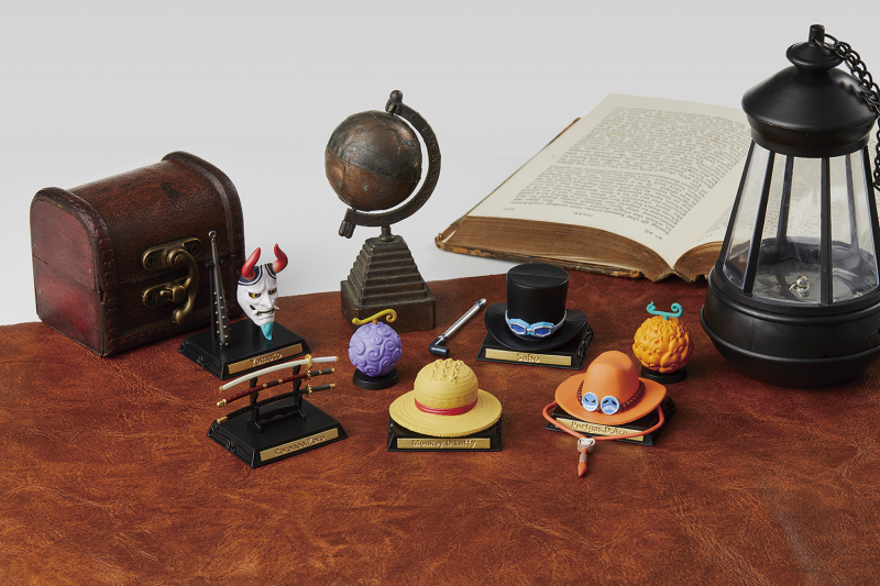 「GASHAPON COLLECTIONS ONE PIECE」轉蛋,以能象徵角色的配件、道具為概念,就算沒有出現任何人物也能令人聯想到劇中角色~收錄有魯夫的招牌草帽和橡膠果實、索隆的三刀展示架、艾斯的牛仔帽與燒燒果實、薩波的紳士高帽和水管,以及大和的般若面具與金碎棒!每款皆有展示用的小底座,並有刻著名字的金色牌子,營造不同的收藏質感!