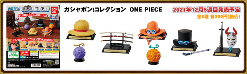 日本 BANDAI 萬代玩具公司轉蛋事業部 GASHAPON 旗下的「GASHAPON COLLECTIONS」系列,將以人氣《航海王》為主題,推出「GASHAPON COLLECTIONS ONE PIECE」轉蛋,一共有 5 種款式,一轉參考售價為 300 日圓,於 2021 年 12 月下旬開轉~
