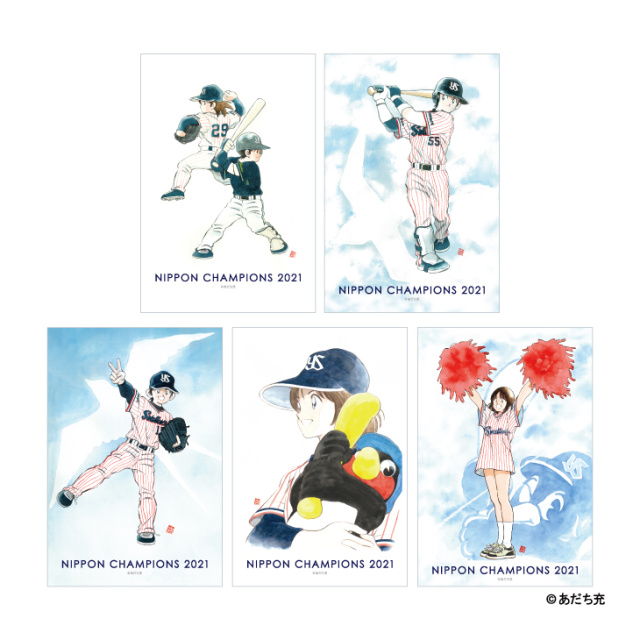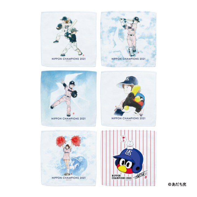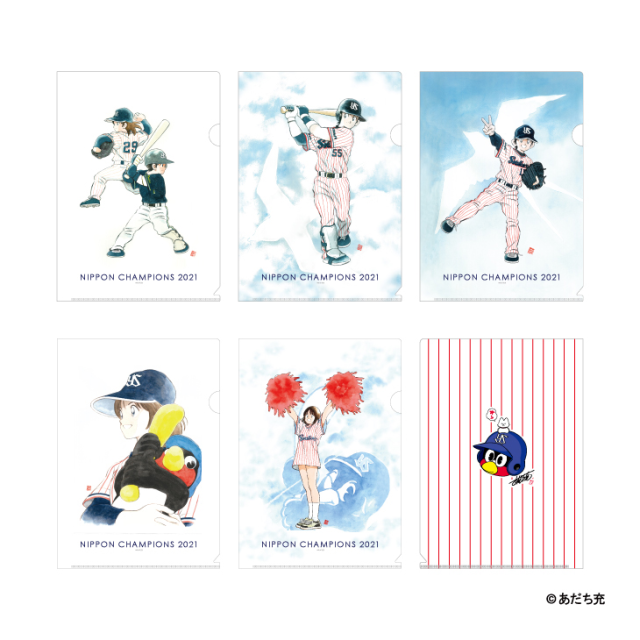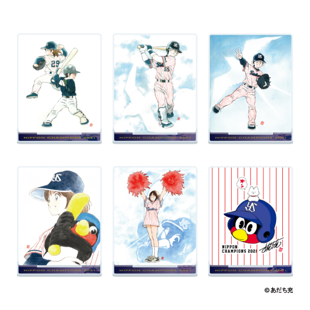 而同時他也是東京養樂多燕子隊的知名球迷,這次也為了歡慶睽違 20 年奪下的日本一,安達充特別繪製了本次專屬的奪冠紀念商品,包含;馬克杯、立牌、紀念小手帕、紀念名信片、資料夾、紀念寫真卡紙與束口袋,都是日常生活常用的品項。