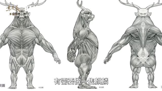 藤原鶴聲先生表示,因為在這次麒麟雙獸的呈現完全是以日本特攝的手法來進行拍攝,因此在道具的製作上必須要考量到人類能夠穿上,並且能夠與戲偶一起配合演出,因此像影片中球尾麒麟的部分,也特別將上半身與下半身分開,目的也是為了方便演員好穿脫,甚至能夠做到左右搖晃、扭屁股的視覺效果,來與劍尾麒麟做出對比。