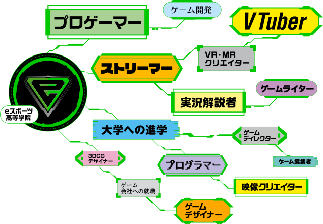 當然,電競產業並不只有選手而已,校方也提供了播報員、VTuber、開設線上直播與遊戲開發等相關的課程,讓學生不是只會打電動而已,而是要深入這個產業,了解各方面的所學。當然,既然是高中,還是有高中的基礎課程需要學習,所以也不會完全荒廢其他高中應該學習的東西。