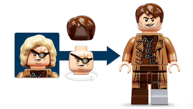 這一款盒組的人偶包含有教授-瘋眼穆敵、妙麗、奈威·隆巴頓,而且各位玩具人還可以將瘋眼穆敵的臉轉過來、再搭配額外零件,讓這款人偶化身為小巴堤·柯羅奇(Barty Crouch Jr.),充分還原電影中他冒充穆敵混進霍格華茲的設定,吐舌表情也太傳神。