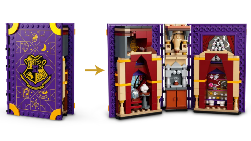 Hogwarts Moment 系列商品主打「來到魔法學院霍格華茲上課」的有趣概念,每一款盒組就是一門學科的課本模型,而且將書本打開之後就會得到一個精巧的場景,搭配盒組內附上的配件、對應學科的教授與學生人偶,就可以把玩出有趣的場面;在 2021 年 1 月時已經有推出變形學、魔藥學、藥草學、符咒學四款盒組,這次要登場的兩款分別是「西碧·崔老妮」教授的占卜學跟「瘋眼穆敵」的黑魔法防禦學。